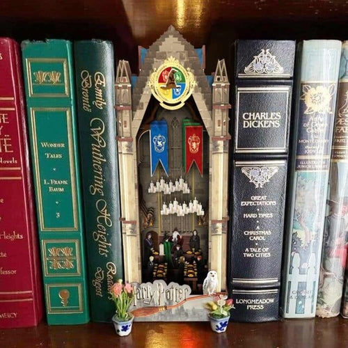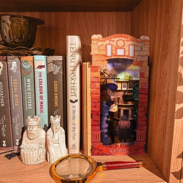Deze Diagon Alley book nook zit vol charme en details. Het vangt echt het gevoel van het betreden van de magische winkels uit de wereld van Harry Potter. Een onmisbaar decoratiestuk voor fans van de serie.