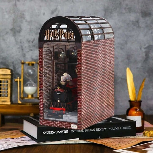 Stap door de bakstenen boog naar Perron 9¾ en zie hoe de magie tot leven komt. Deze prachtig gedetailleerde boekenhoek legt het iconische moment vast waarop de scharlakenrode stoomlocomotief wacht op zijn reis naar Hogwarts, waardoor het een must-have is voor elke fan van de tovenaarswereld.