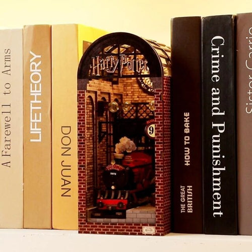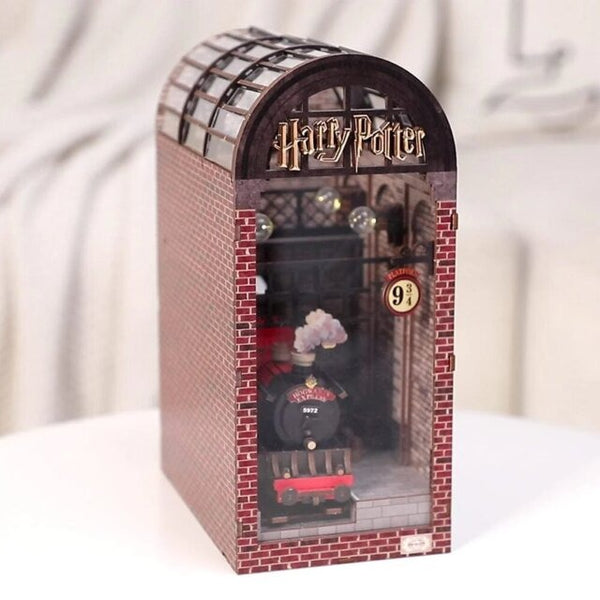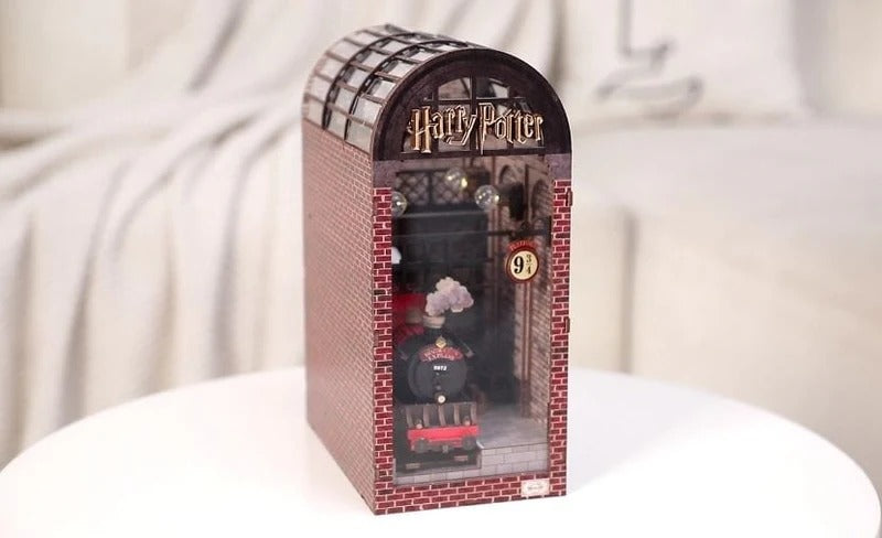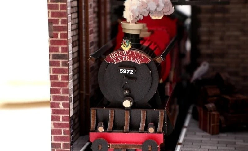 Deze boekenhoek is ontworpen met ingewikkelde details, van de realistische bakstenen muren tot de miniatuurtreinlocomotief en het rookeffect, waardoor het moment van instappen in de Hogwarts Express echt voelt.
