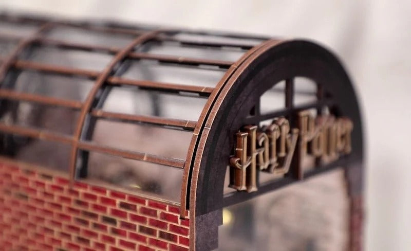 Verborgen achter de iconische bakstenen muur van King's Cross Station, legt deze miniatuur de wonderbaarlijke wereld van Harry Potter vast, compleet met het legendarische bord voor perron 9¾ en de magische stoomlocomotief die klaarstaat om naar Hogwarts te vertrekken.