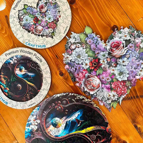 Als je deze puzzel in elkaar zet, ontdek je elementen van de liefde, van de vetgedrukte āL,O,V,Eā-letters tot de tedere hartpictogrammen en bloeiende bloemmotieven.