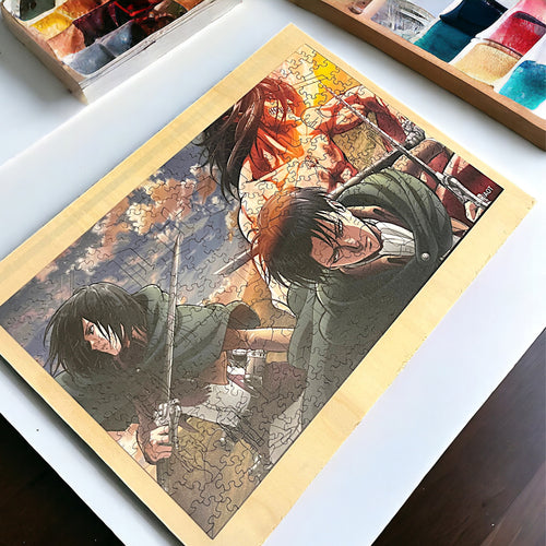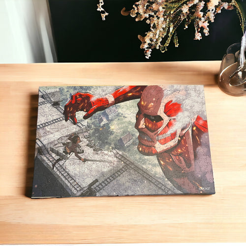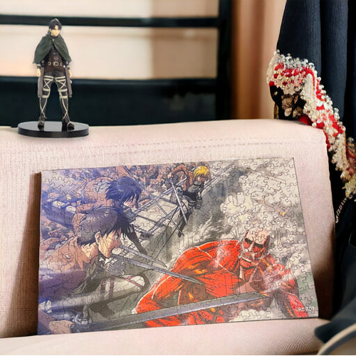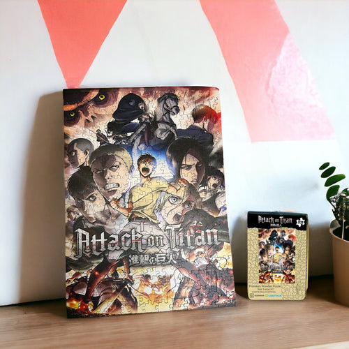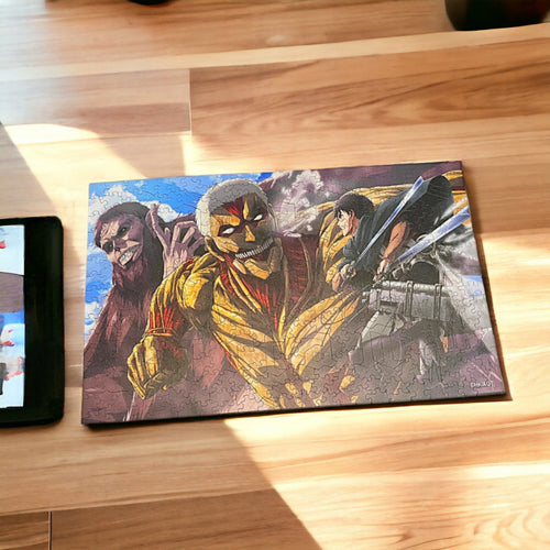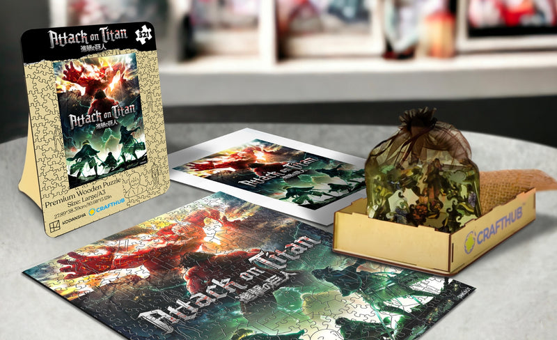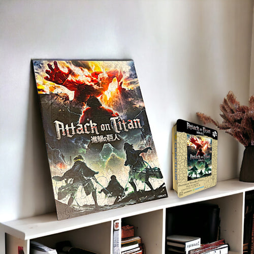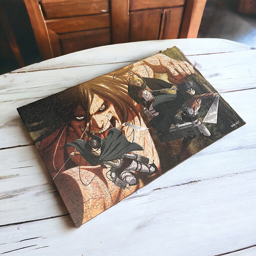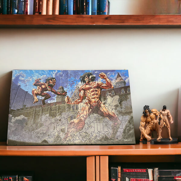 Duik in het hart van het verhaal met onze unieke puzzelstukjes, met afbeeldingen van Eren, Mikasa, en een scala aan geduchte Titanen, waaronder De Zuivere, De Abnormale en De Kolossale.