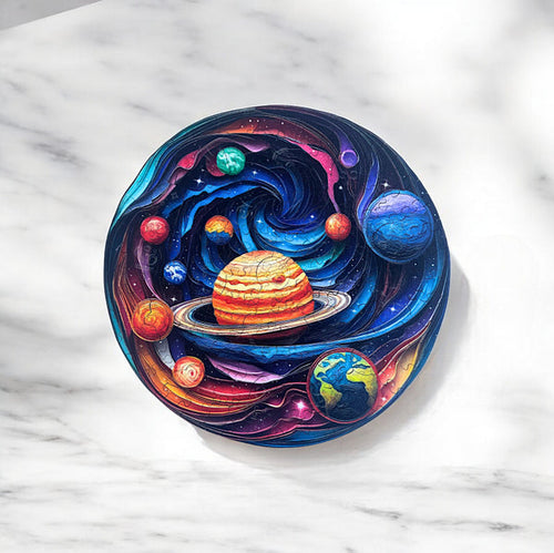 Terwijl je de puzzel in elkaar zet, kom je unieke stukjes tegen met planeten, wervelende sterrenstelsels, glinsterende sterren en andere kosmische wonderen.