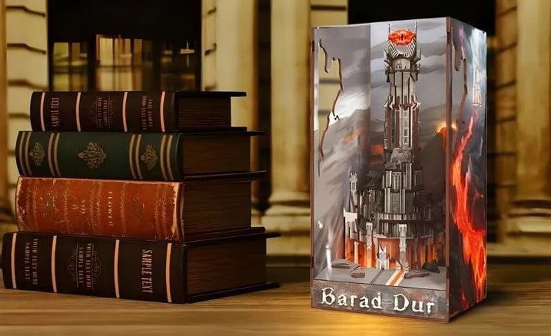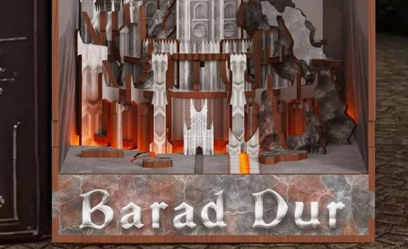 Van de grillige stenen torens tot de gesmolten gloed aan de voet, de Barad-Dûr Book Nook geeft de angstaanjagende grootsheid van Saurons fort weer - een verbluffend staaltje precisie en vakmanschap dat elke boekenplank verandert in een scène uit Midden-aarde.