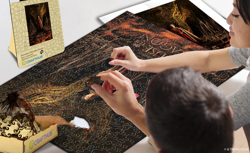 Met originele kunstwerken rechtstreeks uit de cinematografische bron van de epische saga, viert deze serie puzzels de combinatie van authentieke 'House of the Dragon' visuals met de beste kunst van het puzzelmaken.