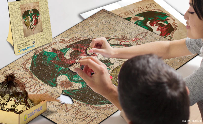 Met originele kunstwerken rechtstreeks uit de cinematografische bron van de epische saga, viert deze serie puzzels de combinatie van authentieke 'House of the Dragon' visuals met de beste kunst van het puzzelmaken.
