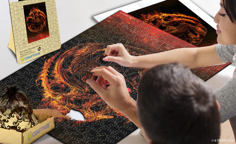Met originele kunstwerken rechtstreeks uit de cinematografische bron van de epische saga, viert deze serie puzzels de combinatie van authentieke 'House of the Dragon' visuals met de beste kunst van het puzzelmaken.