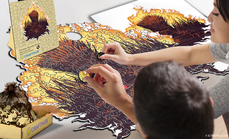 Met originele kunstwerken rechtstreeks uit de cinematografische bron van de epische saga, viert deze serie puzzels de combinatie van authentieke 'House of the Dragon' visuals met de beste kunst van het puzzelmaken.