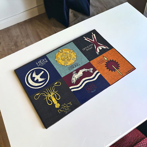 Verken de uitgestrekte landschappen van Westeros terwijl je iconische symbolen uit de serie “Game of Thrones” in elkaar puzzelt. Elk puzzelstukje is een stap door het complexe web van macht en verraad dat deze epische saga kenmerkt.