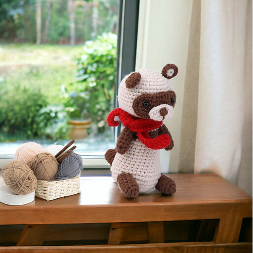 Het All-In-One haakpakket voor beginners bevat: een haaknaald met twee punten, steekmarkeerders, een stompe naald voor het bevestigen van de ogen, ambachtelijke ogen, zacht vulmateriaal, verschillende garens, een uitgebreide handleiding en een handig draagtasje voor de hele set.