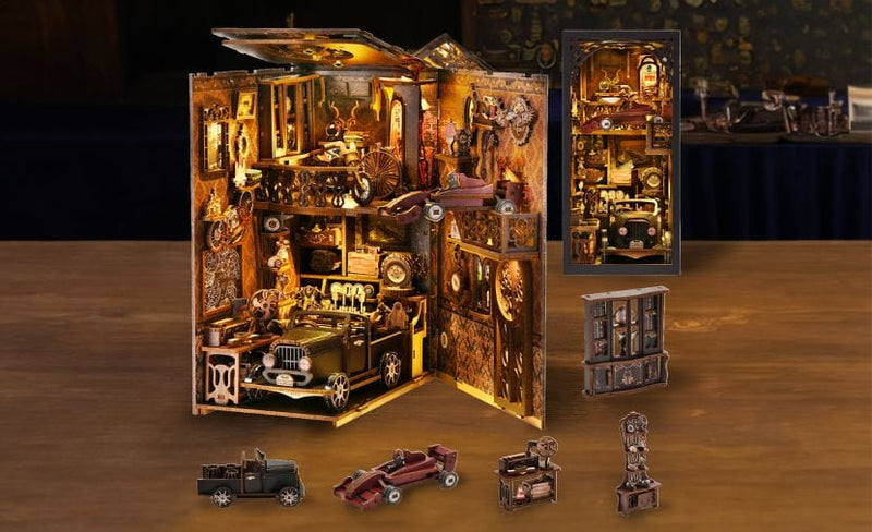 Car Players is vormgegeven als een klassiek hardcoverboek en onthult bij het openen een gedetailleerde mechanische paradijs - perfect voor op de boekenplank, in de studeerkamer of als decoratie in de werkplaats.