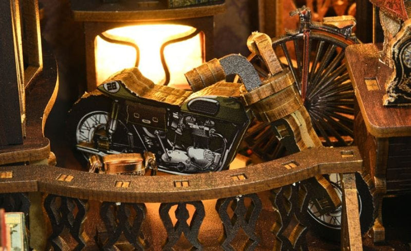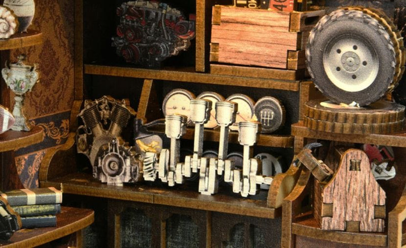 Elk tandwiel, wiel en motor is uit nauwkeurig gezaagd hout gesneden, waardoor het authentieke gevoel van een vintage garage wordt nagebootst.