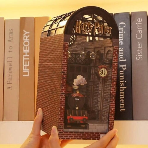 Deze boekenhoek is ontworpen met ingewikkelde details, van de realistische bakstenen muren tot de miniatuurtreinlocomotief en het rookeffect, waardoor het moment van instappen in de Hogwarts Express echt voelt.