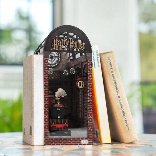 Stap door de bakstenen boog naar Perron 9¾ en zie hoe de magie tot leven komt. Deze prachtig gedetailleerde boekenhoek legt het iconische moment vast waarop de scharlakenrode stoomlocomotief wacht op zijn reis naar Hogwarts, waardoor het een must-have is voor elke fan van de tovenaarswereld.