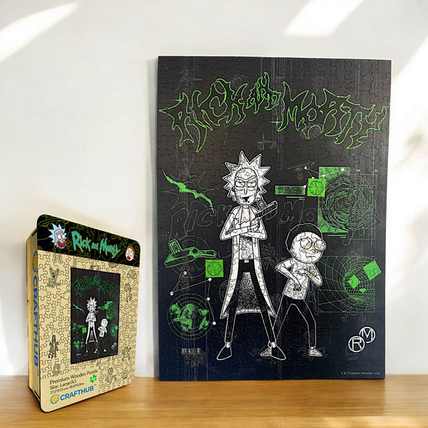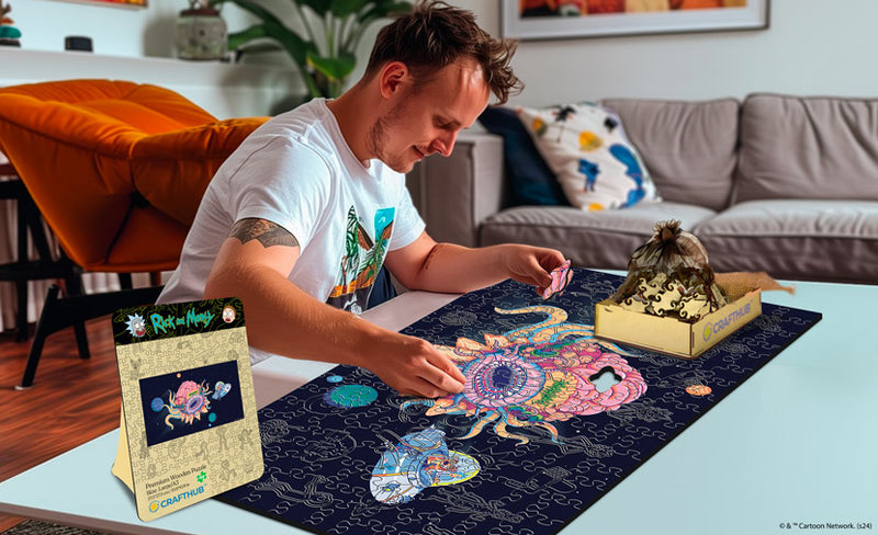 Gemaakt van eersteklas hout en lasergesneden met gekke wetenschapperprecisie van 0,3 mm, klikt elk stukje met bevredigende perfectie in elkaar. Gemaakt voor mensen die houden van chaotisch en bizar, net als de avonturen van Rick and Morty.