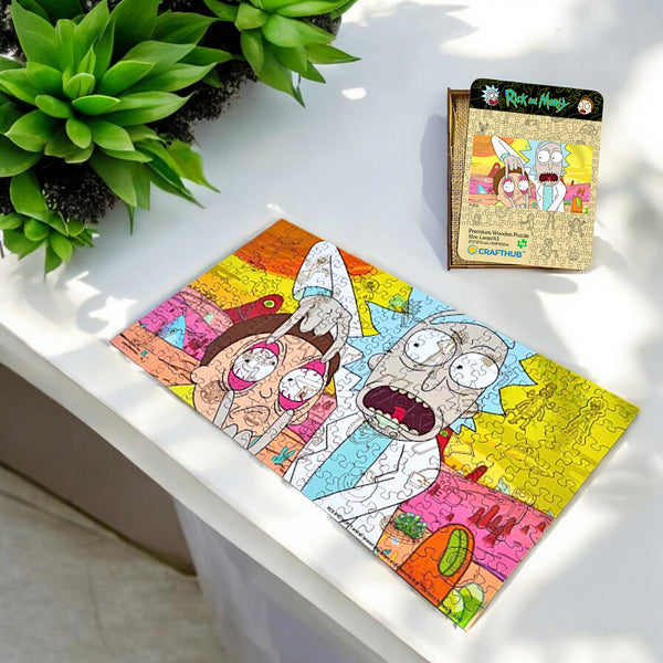 Deze puzzel is geweldig! De kleuren zijn zo helder en de stukjes passen perfect in elkaar. Het gladde oppervlak en de funky vormen zijn geweldig. Als je van Rick & Morty houdt, zul je dit geweldig vinden!