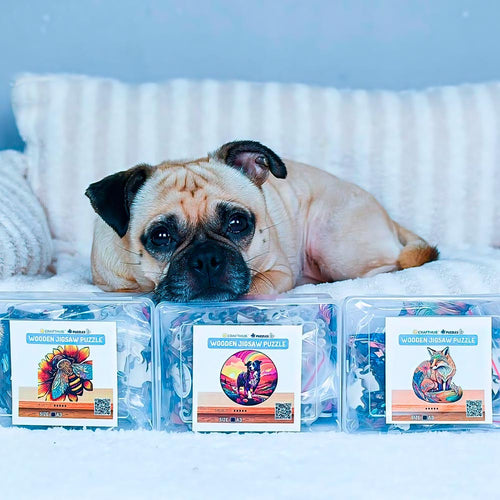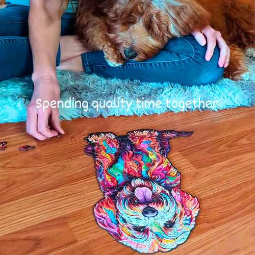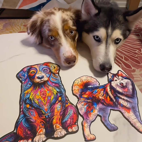 Houten stukjes van hoge kwaliteit in verschillende hondenvormen waren makkelijk te manipuleren zonder dat je bang hoefde te zijn dat ze uit elkaar zouden vallen zoals bij een traditionele puzzel.